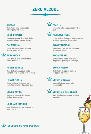 Opções de Drinks zero álcool